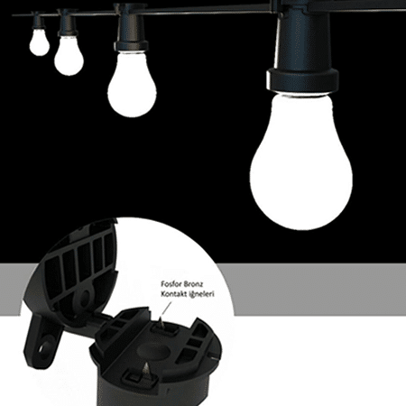 Ürün dış mekan ürünüdür ve IP65 koruma sınıfına sahiptir. Ürün 10 metre uzunlukta üzerinde 10 adet duy bulunmaktadır. Bahçe – balkon – teras aydınlatmaları, organizasyon aydınlatmaları, cafe – restoran – işyeri aydınlatmaları , ev içi aydınlatmalar gibi kullanım alanlarında sıklıkla tercih edilmektedir. Bir kere satın alıp uzun yıllar kullanacağınız bir üründür. Zaman içinde aşınma gibi bir durumla asla karşılaşmazsınız. 10 Metrenin Üzerinde 10 Adet Osram Ampul bulunmaktadır. E27 duy yapısına sahiptir. Kablo 2×1.5 / Her bir duy arasında 95 cm bulunmaktadır. 20 Metrenin Üzerinde 20 Adet Osram Ampul bulunmaktadır. E27 duy yapısına sahiptir. Kablo 2×1.5 / Her bir duy arasında 95 cm bulunmaktadır. Silikonlu ve özel duy yapısı sayesinde kesinlikle su geçirmemektedir.